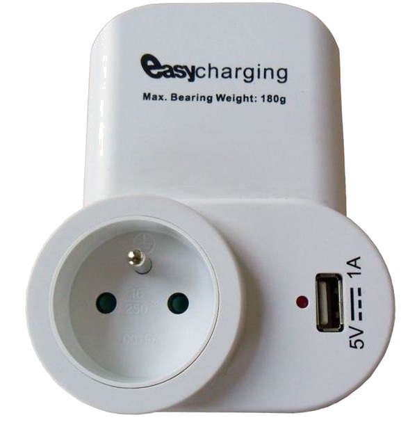 SOLIGHT - USB nabíjecí adaptér s průběžnou zásuvkou, 1000mA, držák na telefon, bílý
