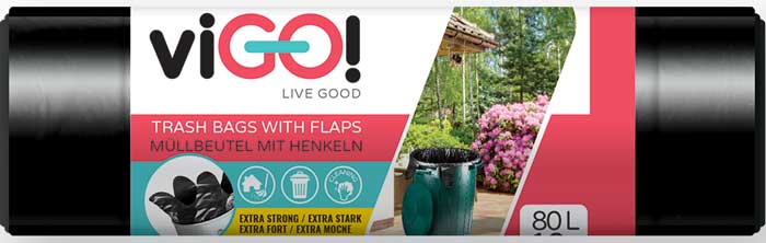 Szemeteszsák füllel LD 80l / 10 db, 80x90 + 20 cm, fekete